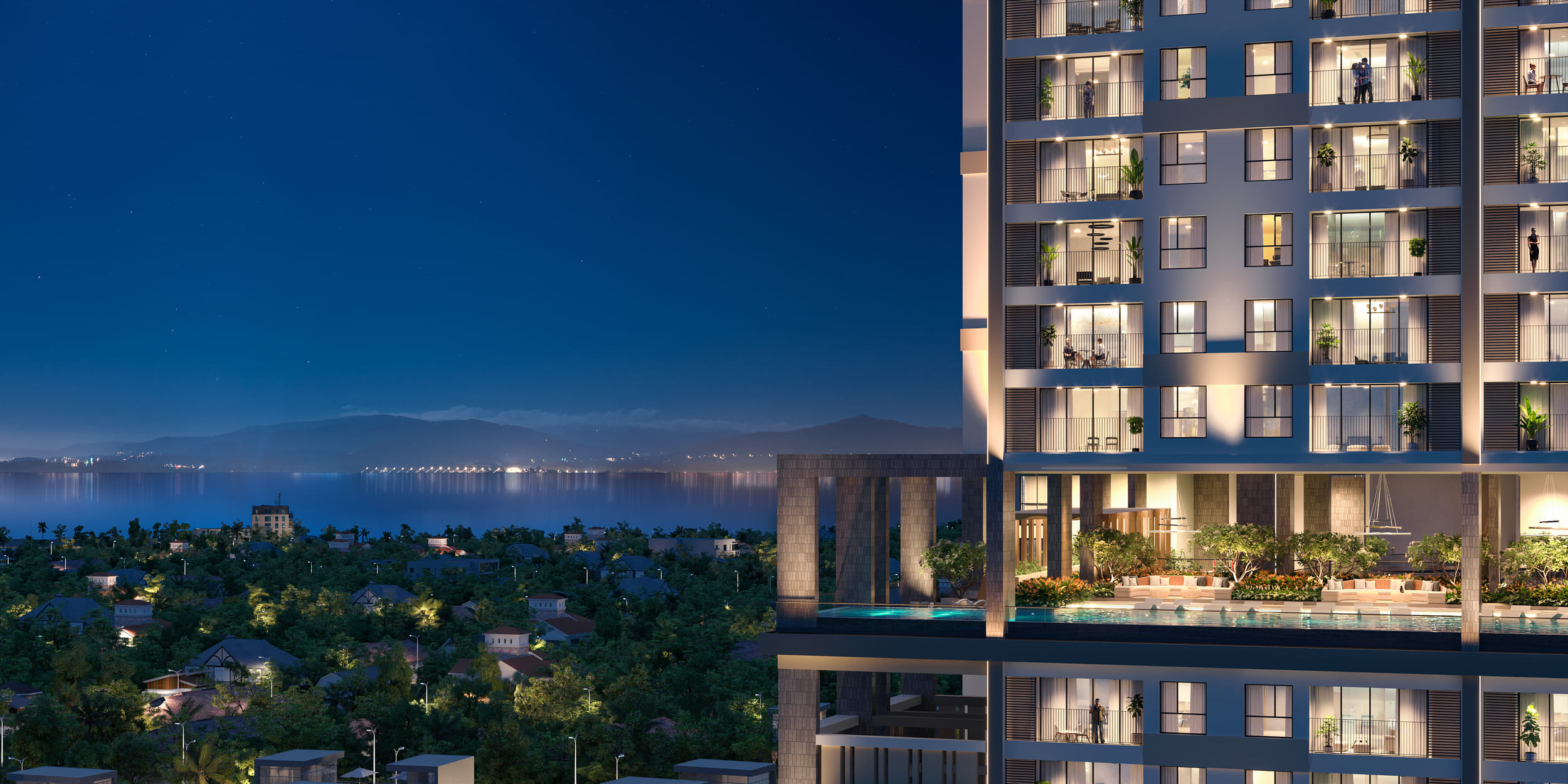 2 sản phẩm căn hộ cao cấp dành cho giới thượng lưu là Duplex & Pent Heights thiết kế 4 tầng, có tầm View 270 độ, ôm trọn thành phố biển