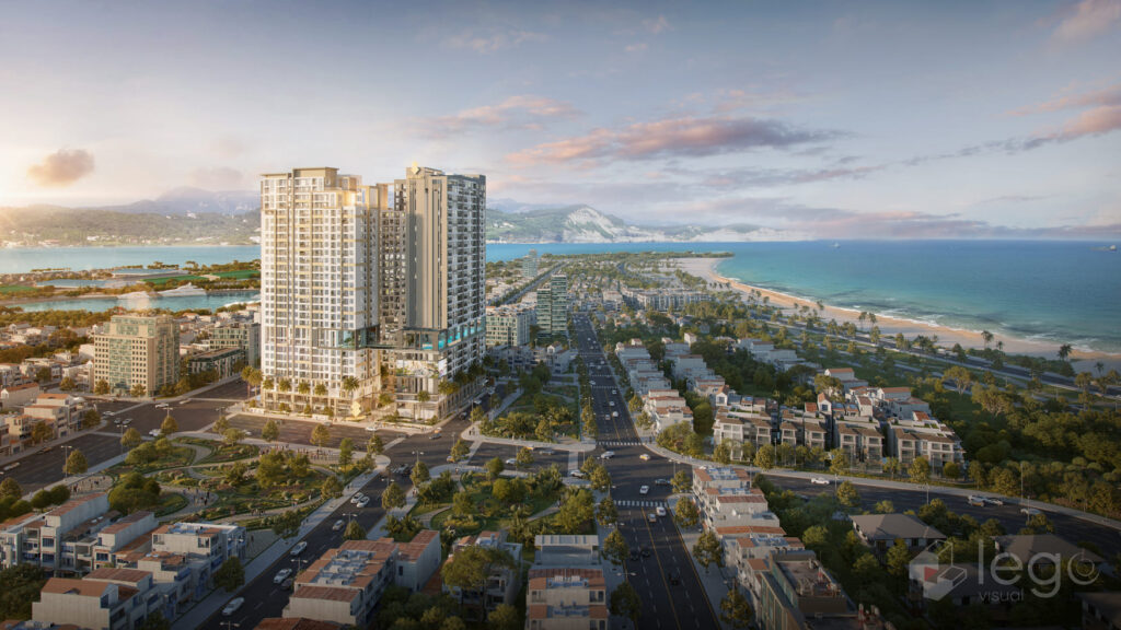 Tháp thiên cảng hạng sang, ôm trọn tầm view cảng Thị Nại. Mỗi tầng có 16 căn hộ từ 1-3 PN. Diện tích & Khoảng giá