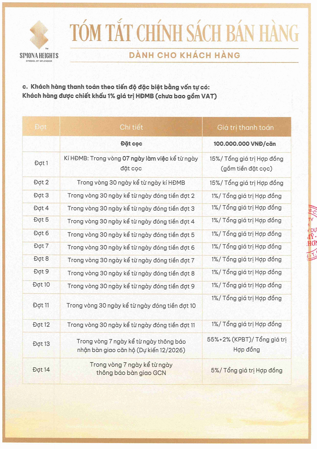 Tháp tâm vịnh cao cấp, ôm trọn tầm view biển. Mỗi tầng có 15 căn hộ từ 1-3 PN (Bán 265 căn). Trong 392 sản phẩm có 127 căn hộ trả lại cho cư dân của chung cư Trần Bình Trọng và bồi hoàn công sản. Diện tích & Khoảng giá